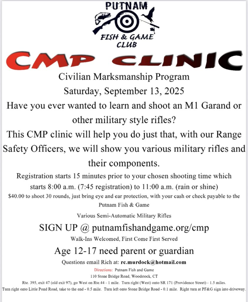 Signups are open on our website at CMP Shoots – Putnam Fish and Game Club